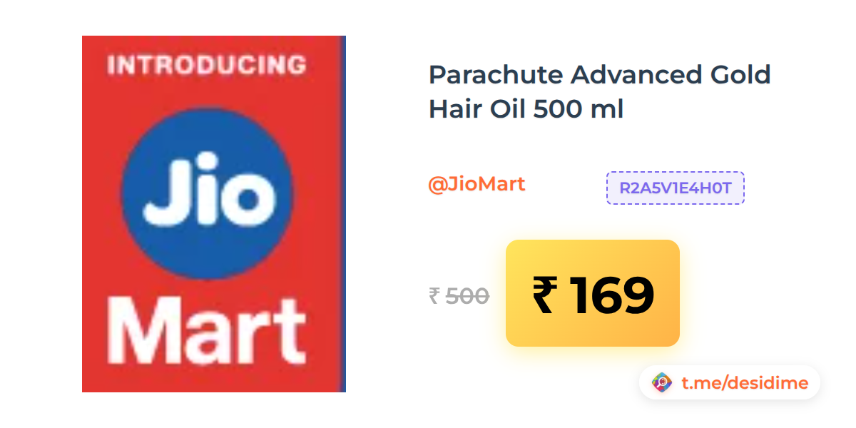 66% off on - Parachute Advanced Gold Hair Oil 500 ml - Rs. 169
