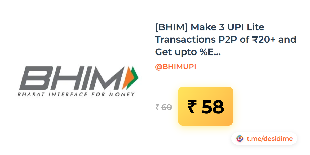 3% off on - [BHIM] Make 3 UPI Lite Transactions P2P of ₹20+ and Get upto ₹100 cashback 8pm - 12am assured 2cb (12 March 2026) - Rs. 58