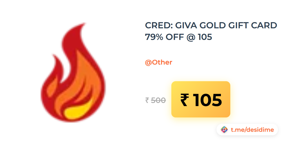 79% off on - CRED: GIVA GOLD GIFT CARD 79% OFF @ 105 - Rs. 105