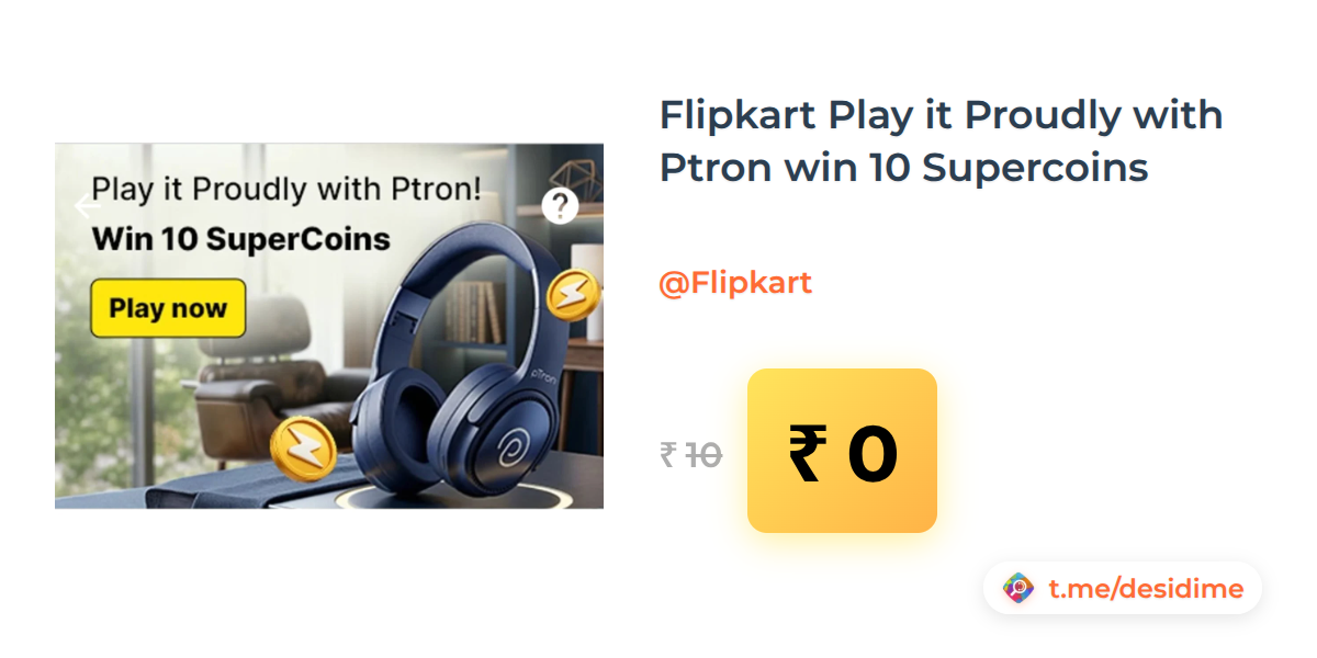 100% off on - Flipkart Play it Proudly with Ptron win 10 Supercoins - Rs. 0