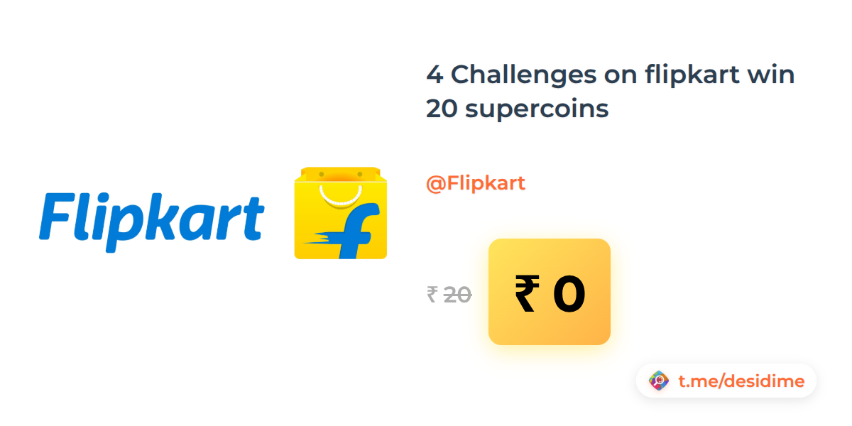 100% off on - 4 Challenges on flipkart win 20 supercoins - Rs. 0