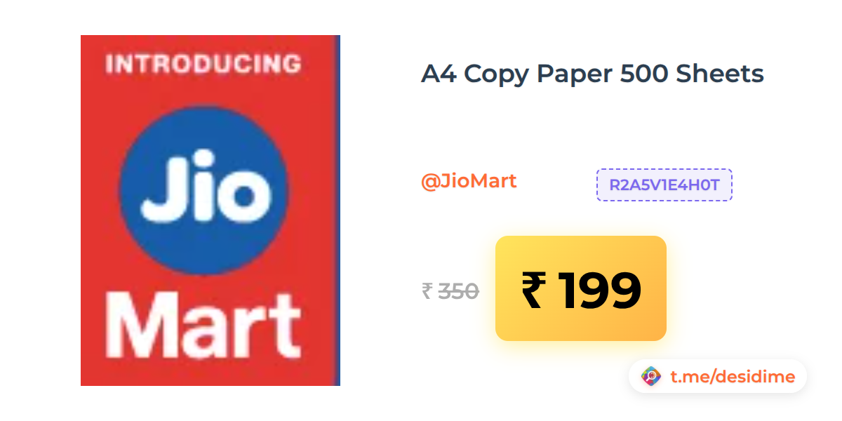 43% off on - A4 Copy Paper 500 Sheets - Rs. 199