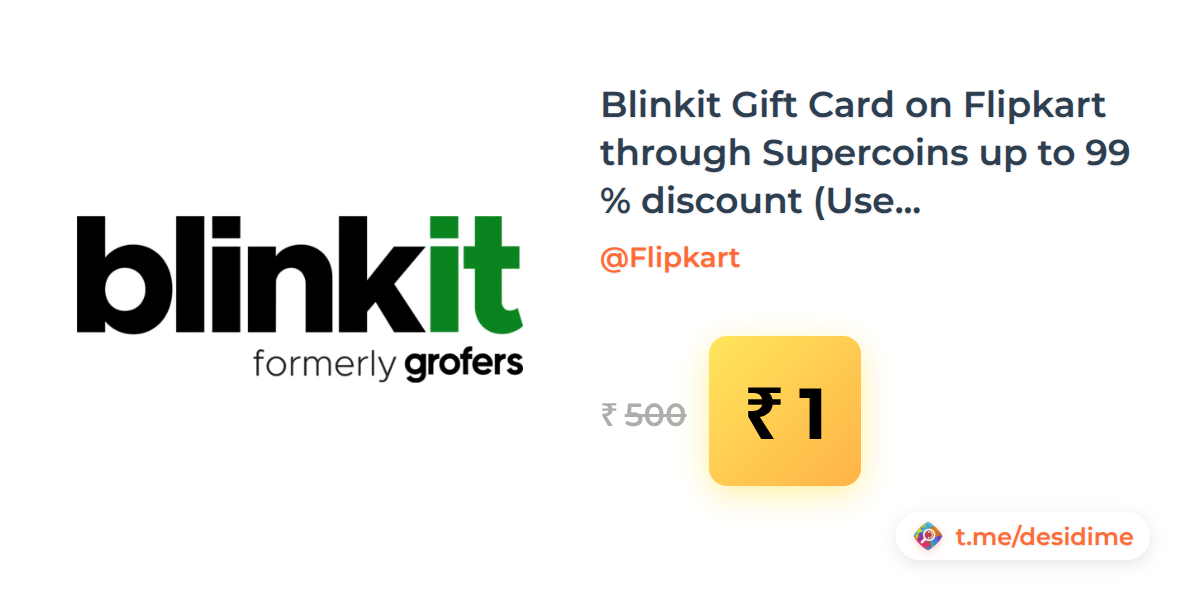 100% off on - Blinkit Gift Card on Flipkart through Supercoins up to 99 % discount (User Specific) - Rs. 1