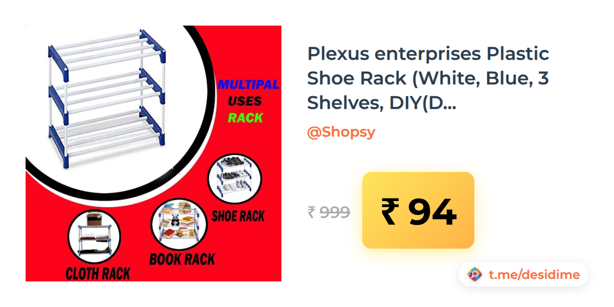 91% off on - Plexus enterprises Plastic Shoe Rack (White, Blue, 3 Shelves, DIY(Do-It-Yourself)) - Rs. 94