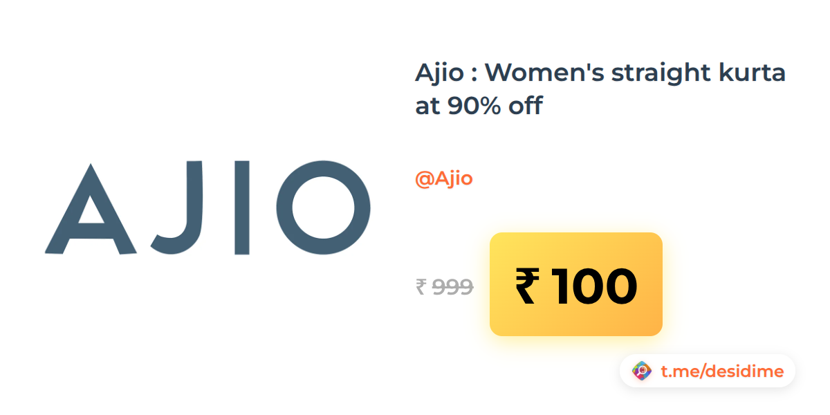 90% off on - Ajio : Women's straight kurta at 90% off - Rs. 100