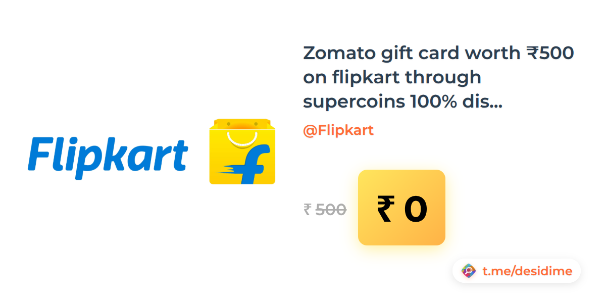 100% off on - Zomato gift card worth ₹500 on flipkart through supercoins 100% discount (user specific) - Rs. 0