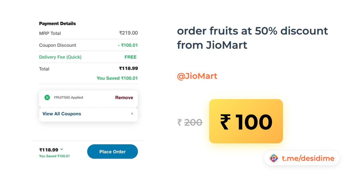 50% off on - order fruits at 50% discount from JioMart - Rs. 100