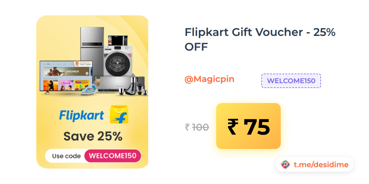 25% off on - Flipkart Gift Voucher - 25% OFF - Rs. 75