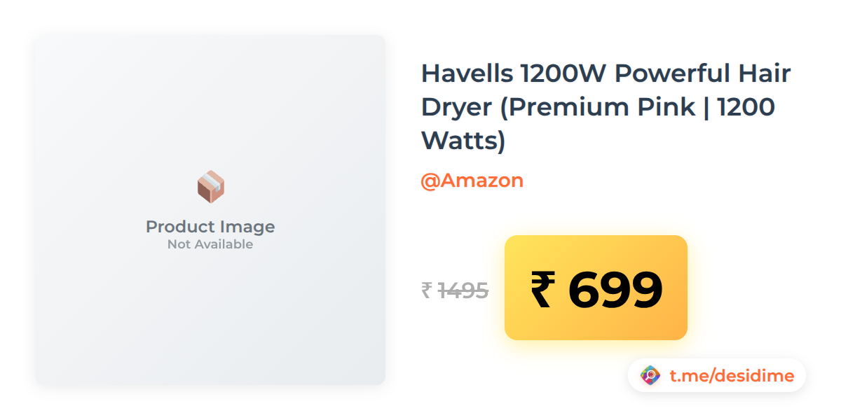 53% off on - Havells 1200W Powerful Hair Dryer (Premium Pink | 1200 Watts) - Rs. 699