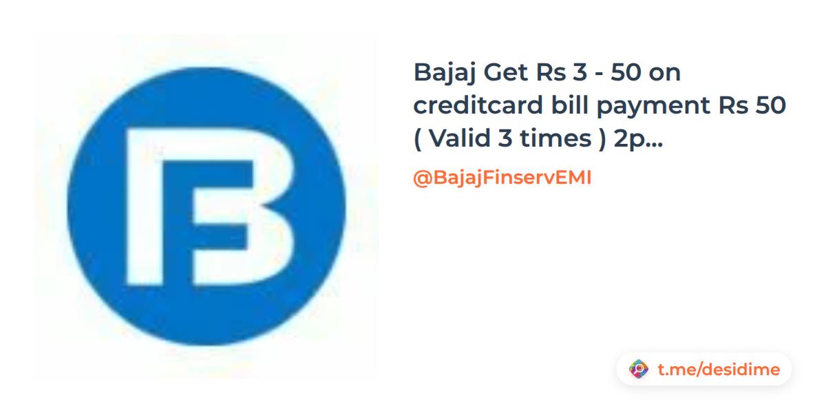 Bajaj Get Rs 3 - 50 on creditcard bill payment Rs 50 ( Valid 3 times ) 2pm - 5pm