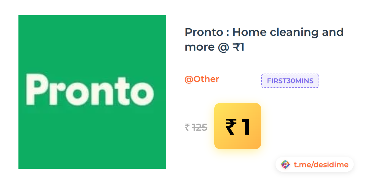 99% off on - Pronto : Home cleaning and more @ ₹1 - Rs. 1