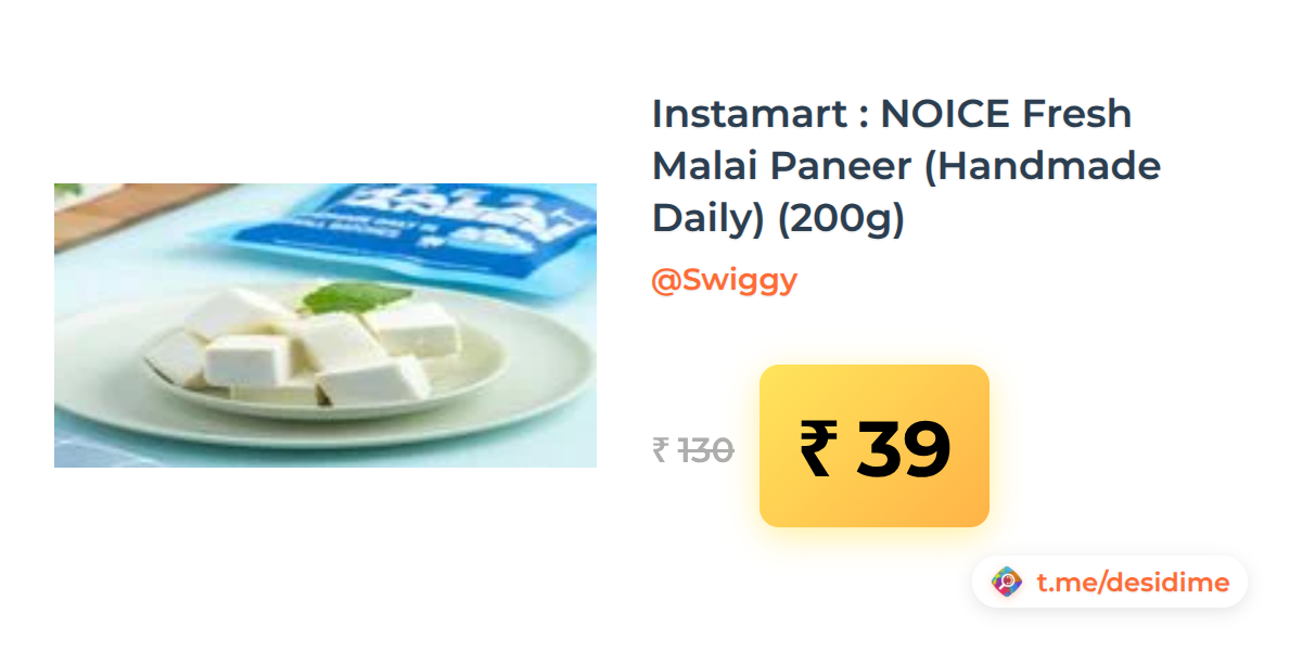 70% off on - Instamart : NOICE Fresh Malai Paneer (Handmade Daily) (200g) - Rs. 39