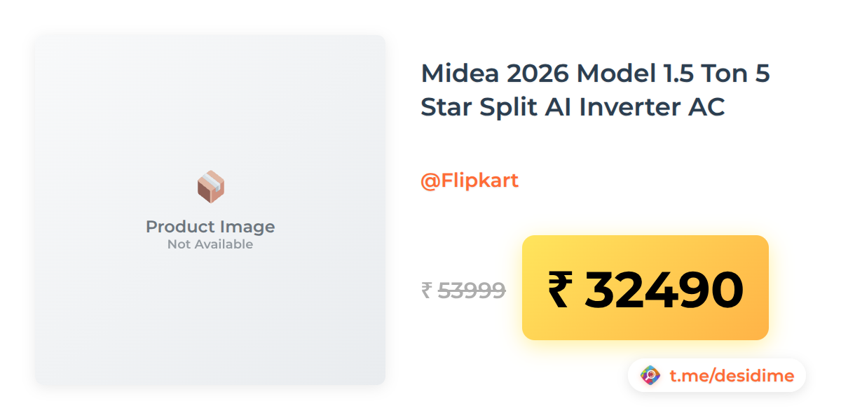 40% off on - Midea 2026 Model 1.5 Ton 5 Star Split AI Inverter AC - Rs. 32490
