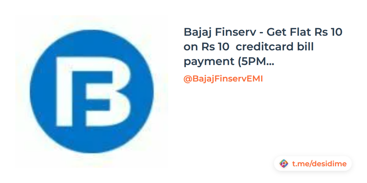 Bajaj Finserv - Get Flat Rs 10 on Rs 10 creditcard bill payment (5PM - 8 PM )