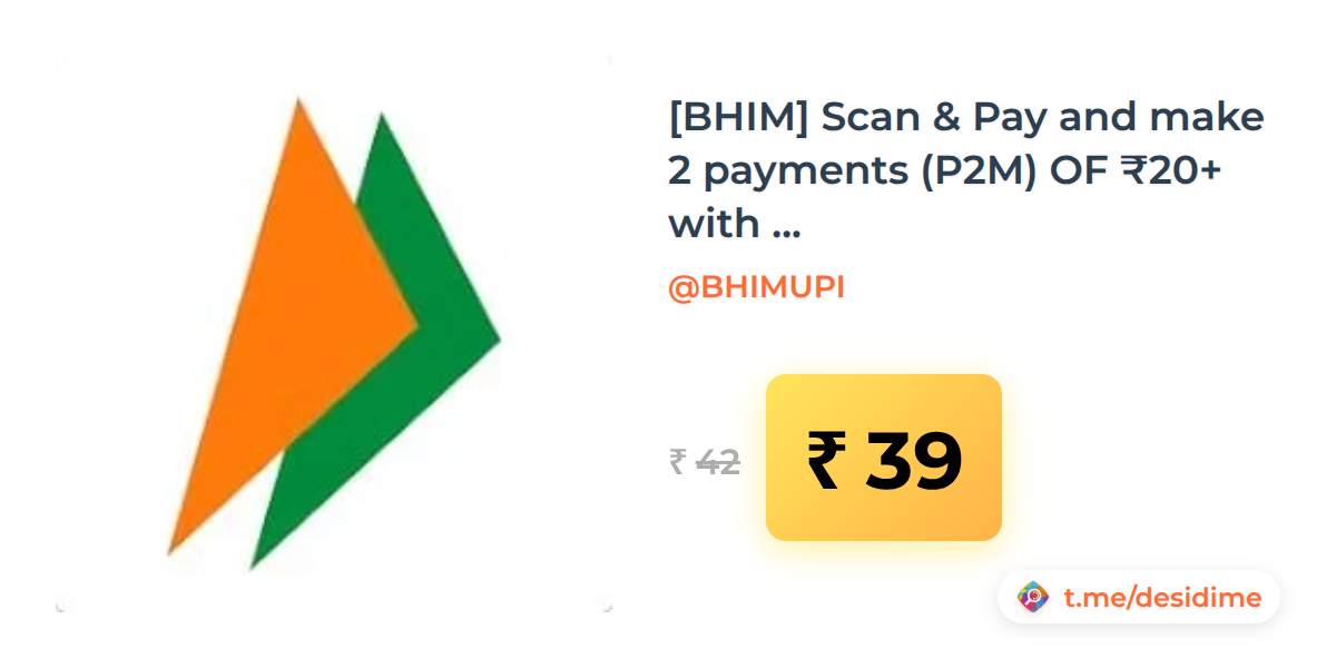 7% off on - [BHIM] Scan & Pay and make 2 payments (P2M) OF ₹20+ with BHIM and get upto ₹50 cashback 6PM - 8PM (15 March 2026) - Rs. 39
