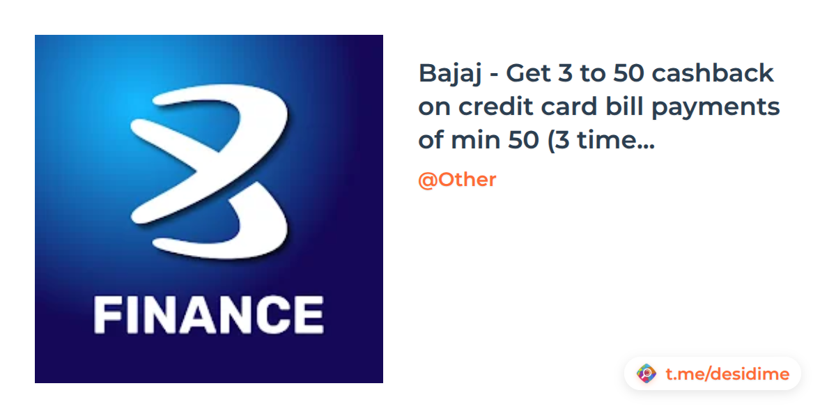 Bajaj - Get 3 to 50 cashback on credit card bill payments of min 50 (3 times) (2 PM to 5 PM)