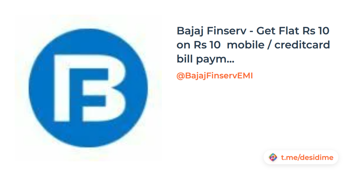 Bajaj Finserv - Get Flat Rs 10 on Rs 10 mobile / creditcard bill payment (6PM - 9 PM )