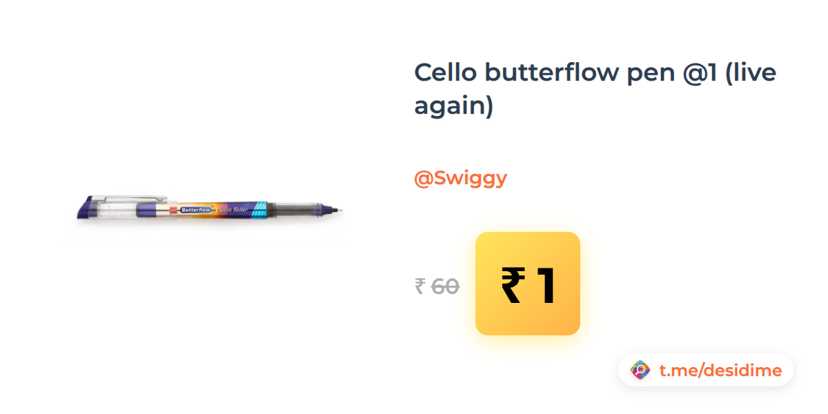 98% off on - Cello butterflow pen @1 (live again) - Rs. 1
