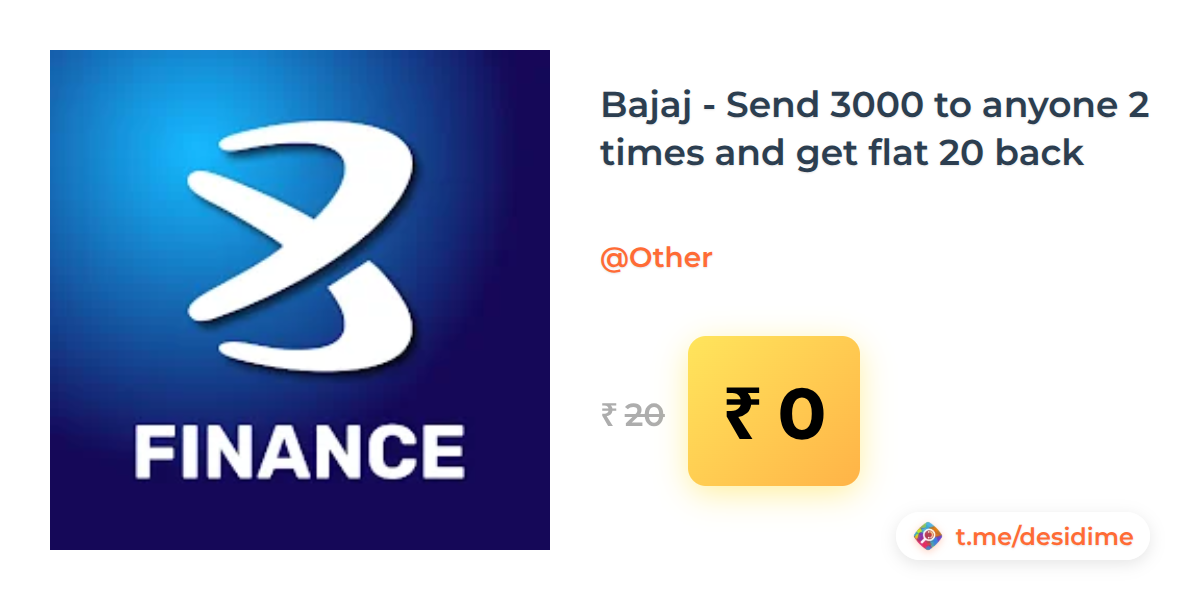 100% off on - Bajaj - Send 3000 to anyone 2 times and get flat 20 back - Rs. 0