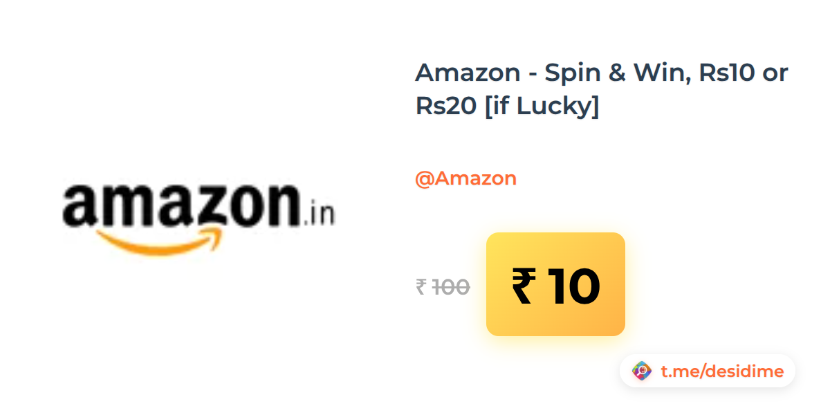 90% off on - Amazon - Spin & Win, Rs10 or Rs20 [if Lucky] - Rs. 10