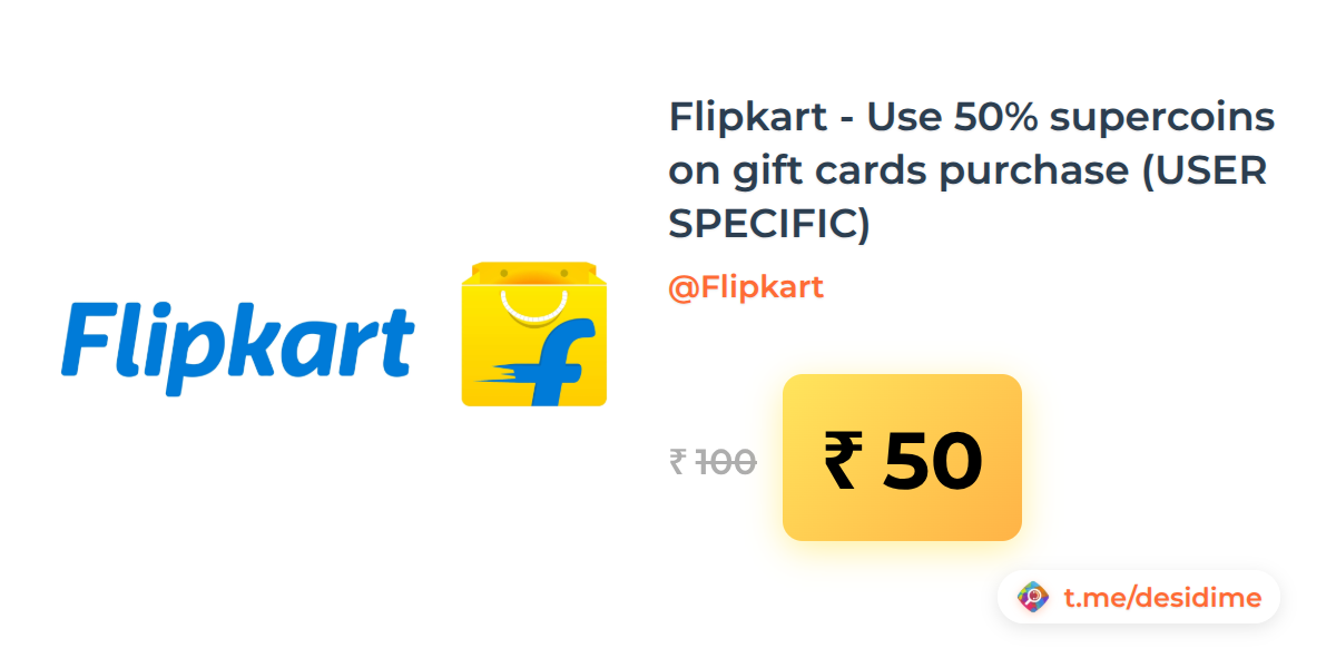 50% off on - Flipkart - Use 50% supercoins on gift cards purchase (USER SPECIFIC) - Rs. 50