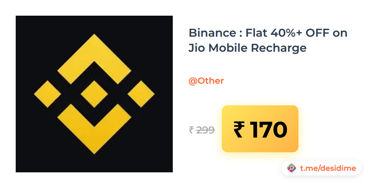 43% off on - Binance : Flat 40%+ OFF on Jio Mobile Recharge - Rs. 170