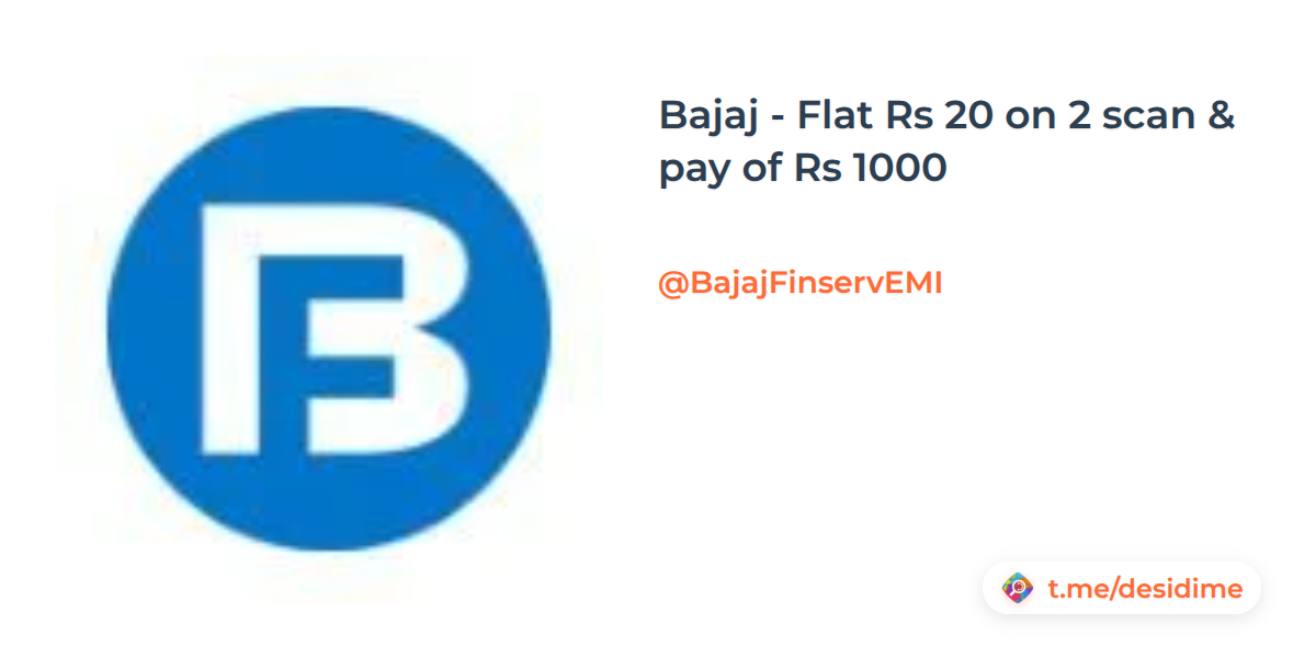 Bajaj - Flat Rs 20 on 2 scan & pay of Rs 1000