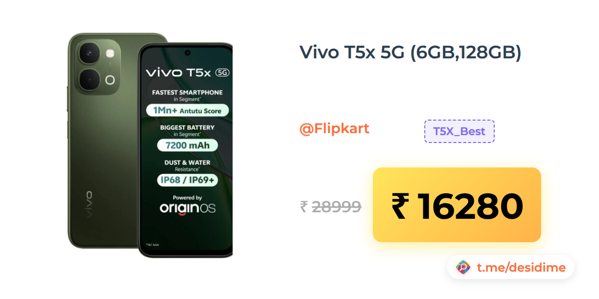 44% off on - Vivo T5x 5G (6GB,128GB) - Rs. 16280