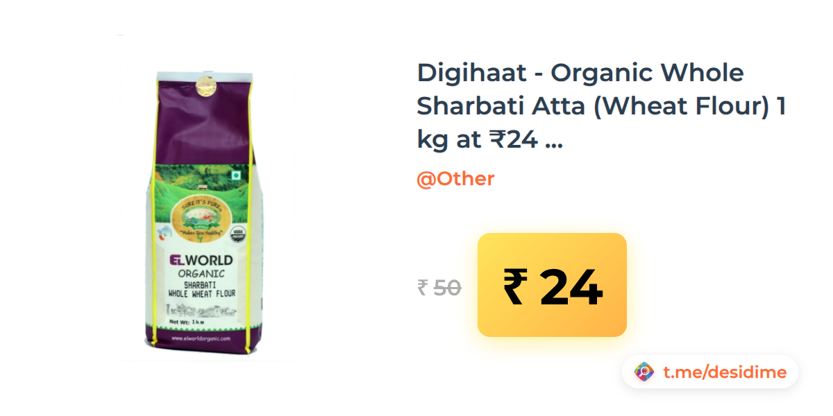 52% off on - Digihaat - Organic Whole Sharbati Atta (Wheat Flour) 1 kg at ₹24 {2/3 times per id} - Rs. 24