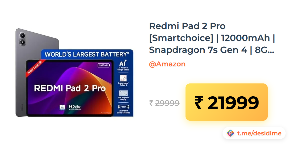 27% off on - Redmi Pad 2 Pro [Smartchoice] | 12000mAh | Snapdragon 7s Gen 4 | 8GB,128GB |Graphite Grey - Rs. 21999