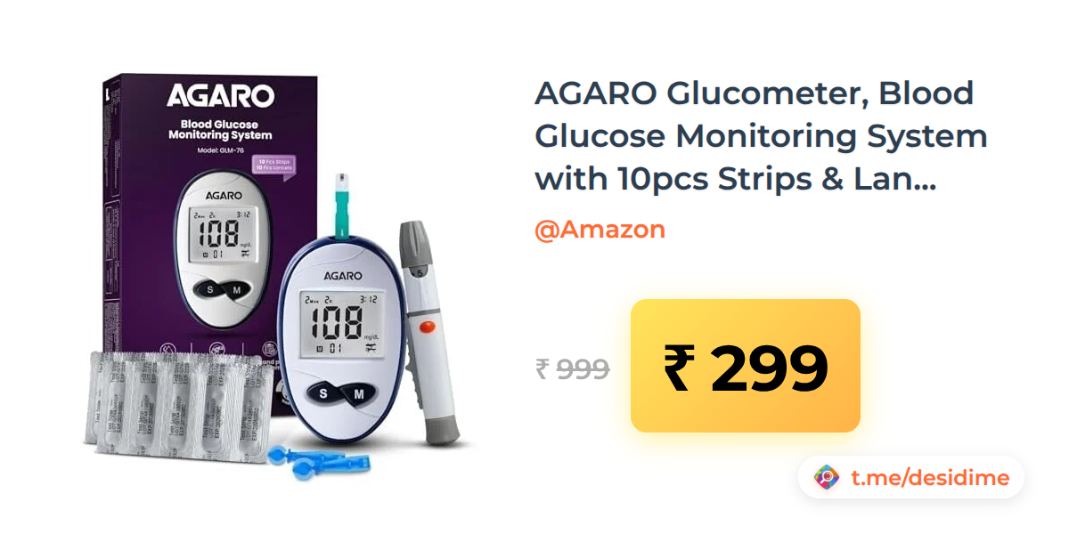 70% off on - AGARO Glucometer, Blood Glucose Monitoring System with 10pcs Strips & Lancets - Rs. 299