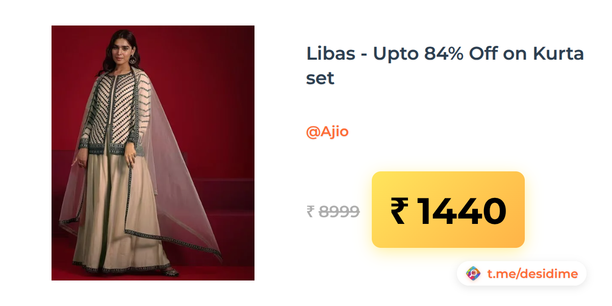 84% off on - Libas - Upto 84% Off on Kurta set - Rs. 1440