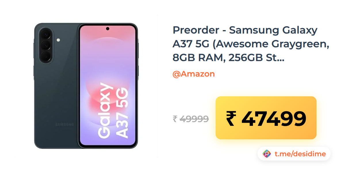 5% off on - Preorder - Samsung Galaxy A37 5G (Awesome Graygreen, 8GB RAM, 256GB Storage) - Rs. 47499