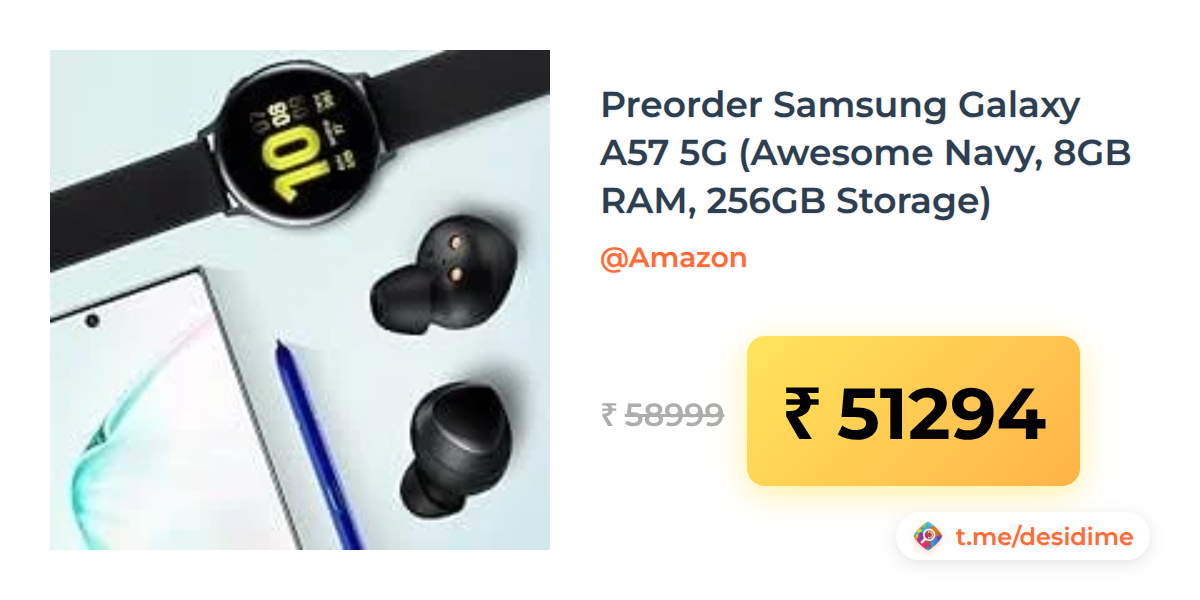 13% off on - Preorder Samsung Galaxy A57 5G (Awesome Navy, 8GB RAM, 256GB Storage) - Rs. 51294