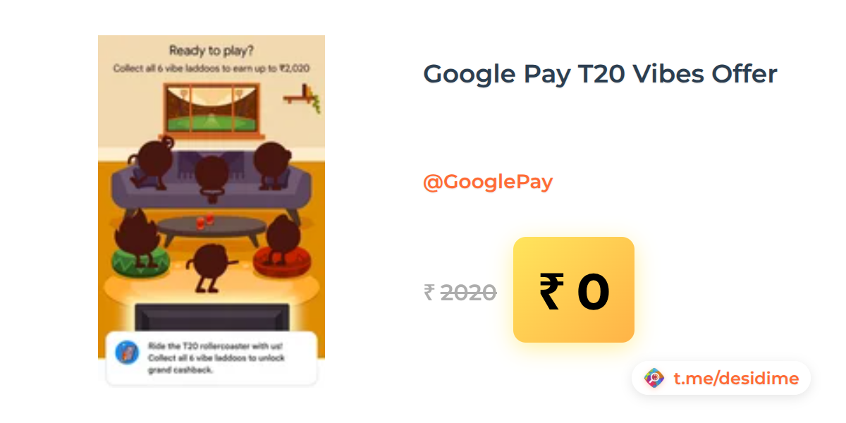 100% off on - Google Pay T20 Vibes Offer - Rs. 0