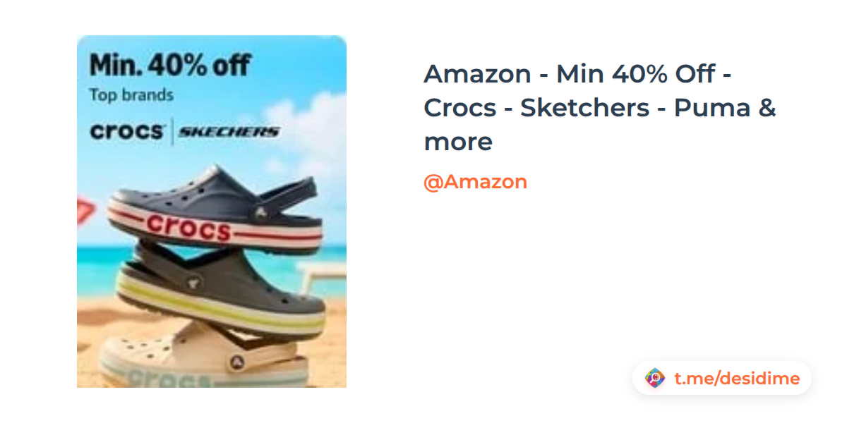 Amazon - Min 40% Off - Crocs - Sketchers - Puma & more