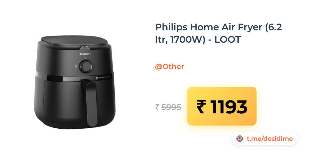🌡598° - Philips Home Air Fryer (6.2 ltr, 1700W) - Rs 1193
