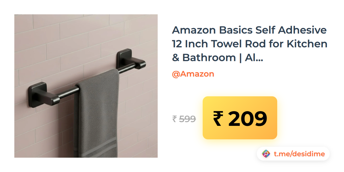 65% off on - Amazon Basics Self Adhesive 12 Inch Towel Rod for Kitchen & Bathroom | Aluminium Towel Rack - Rs. 209