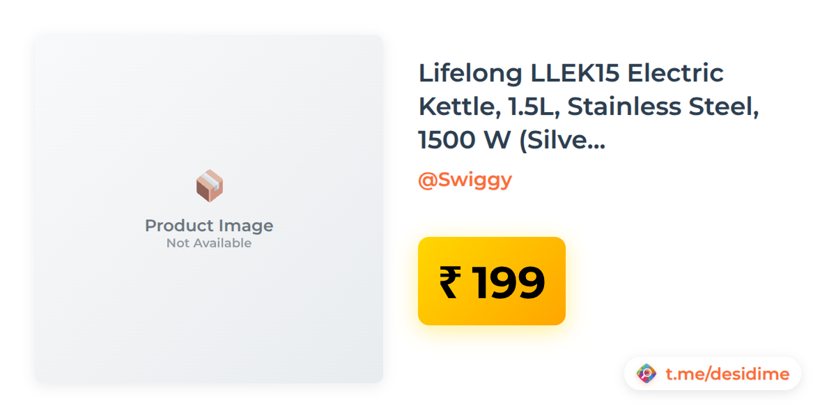 80% off on - Lifelong LLEK15 Electric Kettle, 1.5L, Stainless Steel, 1500 W (Silver) - [ 1 unit ] - Rs. 199