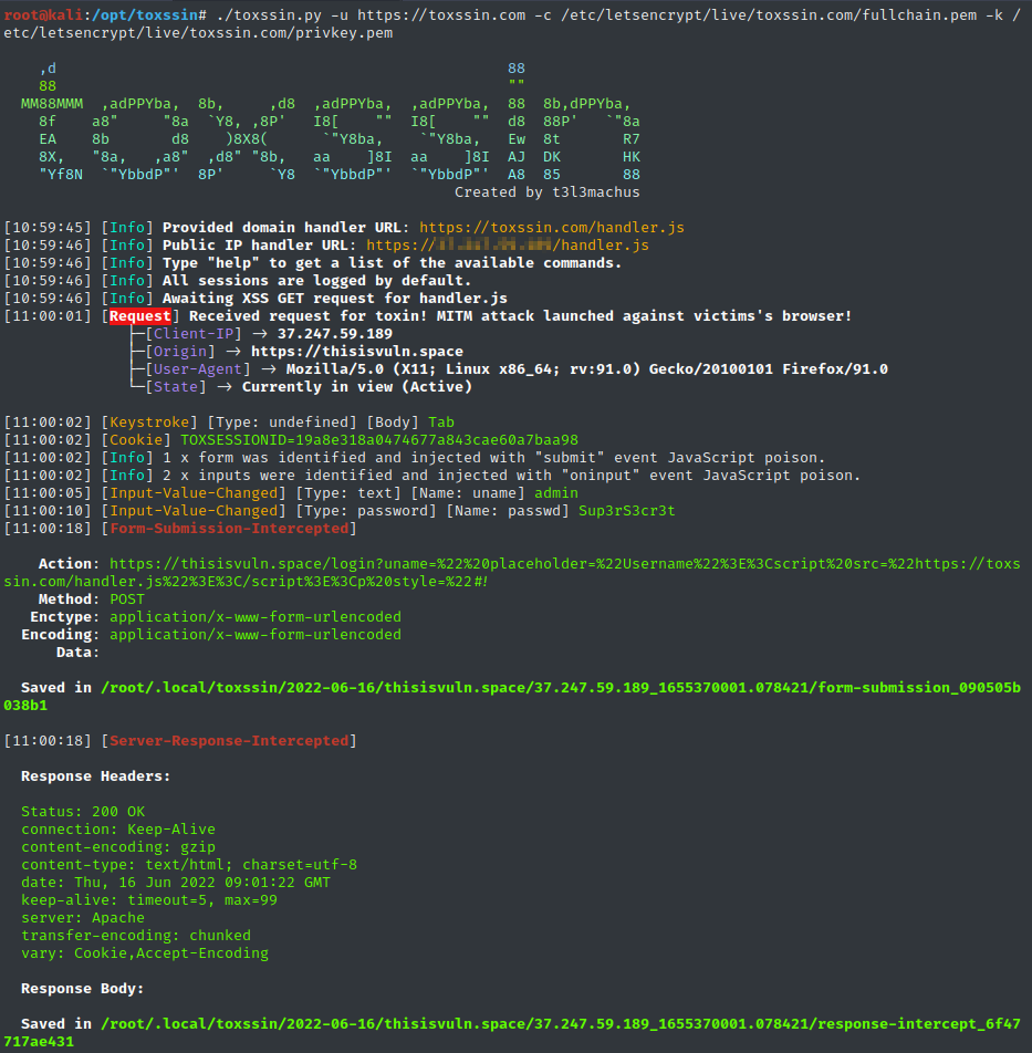 Penetration testing tool that automates the process of exploiting Cross-Site Scripting (XSS) vulnerabilities. It consists of an https server that works as an interpreter for the traffic generated by the malicious JavaScript payload that powers this tool (toxin.js).