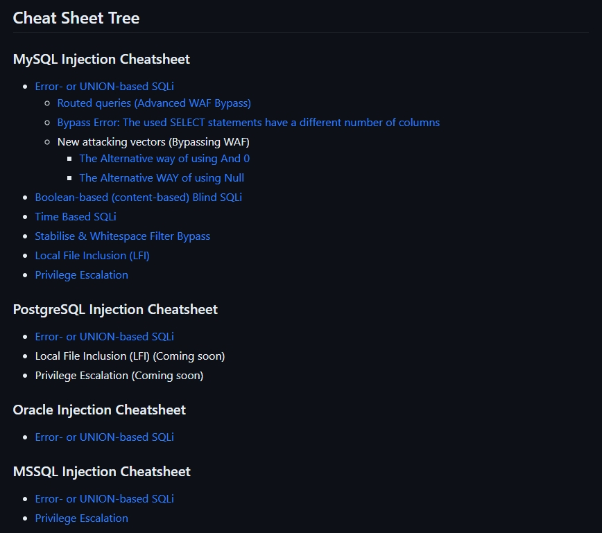 https://github.com/kleiton0x00/Advanced-SQL-Injection-Cheatsheet