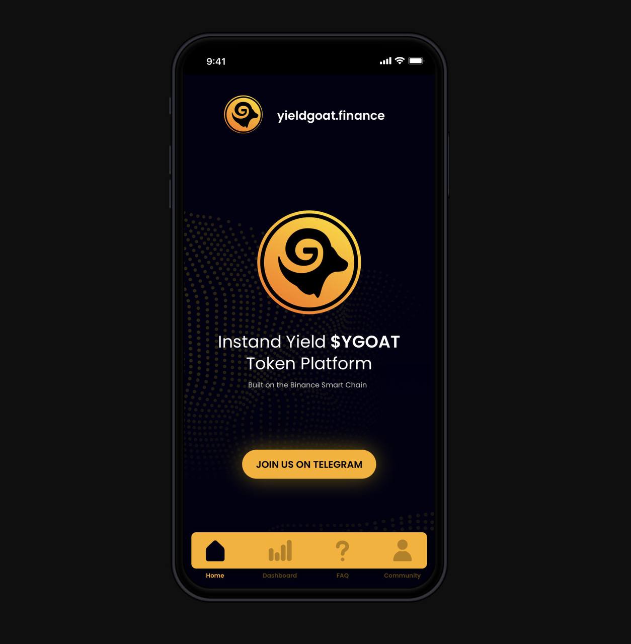 yGOAT is an deflationary automated instant yield token on Binance Smart Chain. Holders of yGOAT receive yield for holding the token in their BSC wallet without complicated farming and liquidity providing. Use the earnings calculator on the website to see how much you can earn by holding yGOAT.