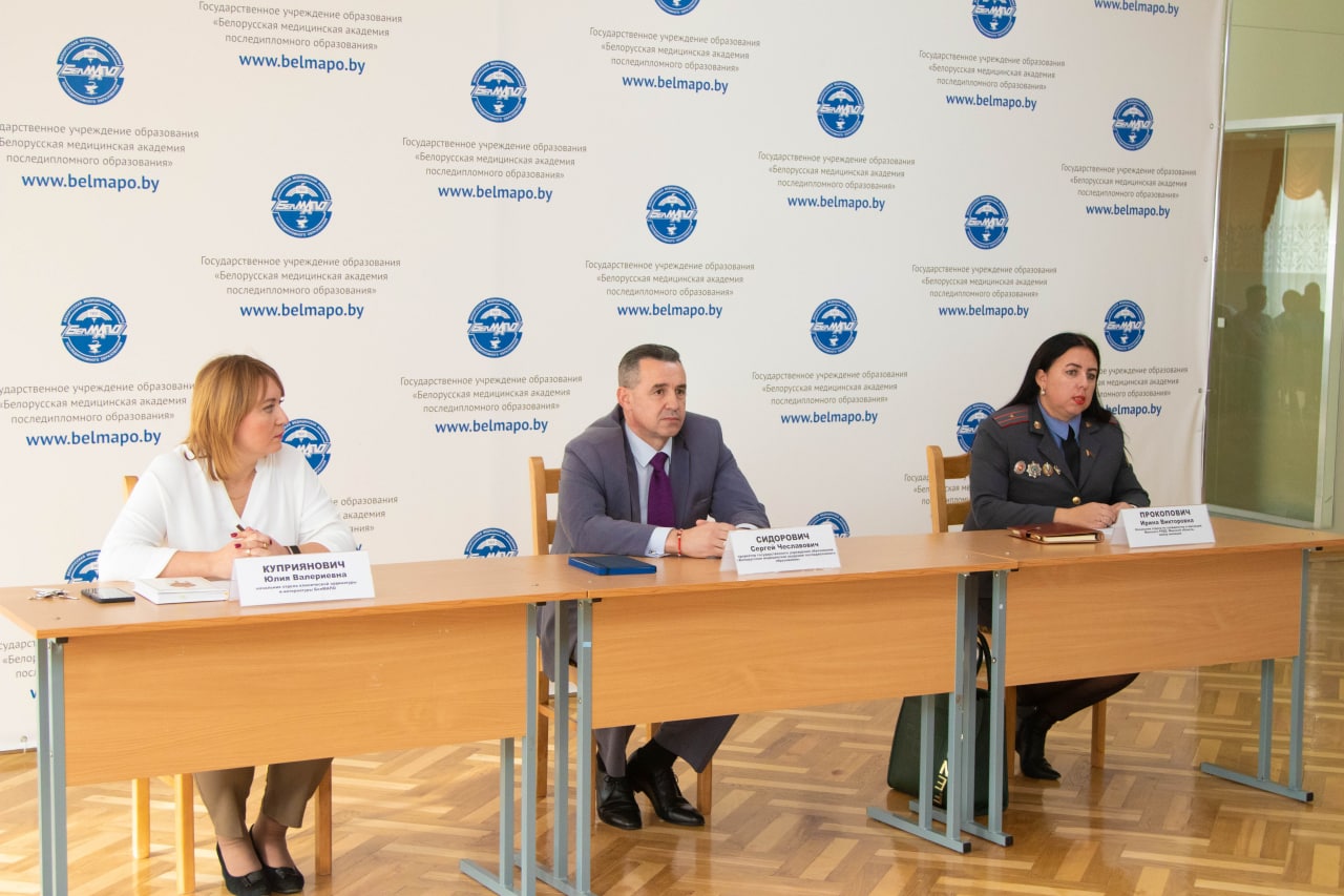 Во встрече приняли участие проректор Сергей Сидорович, начальник отдела клинической ординатуры и интернатуры Юлия Куприянович и начальник отдела по гражданству и миграции Минского РУВД Минской области, майор милиции Ирина Прокопович.