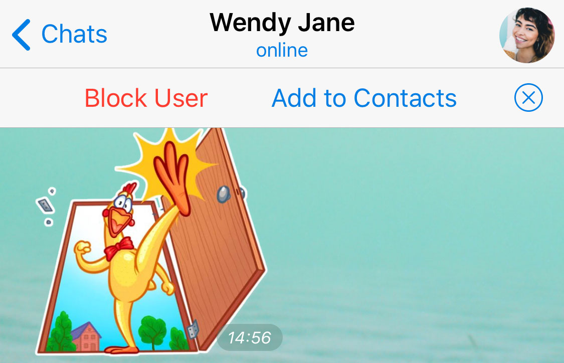 All new chats now have an Add to Contacts button at the top. This allows you to quickly add anyone who messages you to your Telegram contacts, even if you don't know their phone number yet.