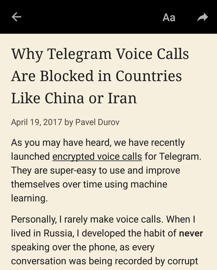 To get a glimpse of the new world, just send a link from one of the websites on this list via Telegram and you'll see an Instant View button right below. Tap this button to instantly get an elegantly formatted page — no need to wait for your browser to load.