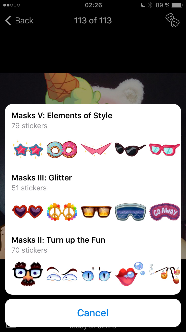Our artists created hundreds of beautiful and fun masks as examples, but everything we do here in Telegram is an open platform. So as of today, anyone can use the /newmasks command for the @stickers bot to upload their own masks.
