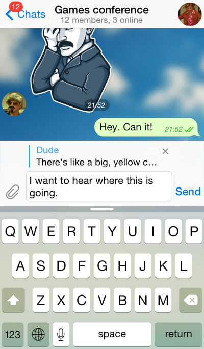 Group chats have not evolved much since they first appeared in messaging apps many years ago. Today's new features bring group chat communication much closer to what it should look like in 2015. iOS, Android, OSX and Telegram Web get them first.